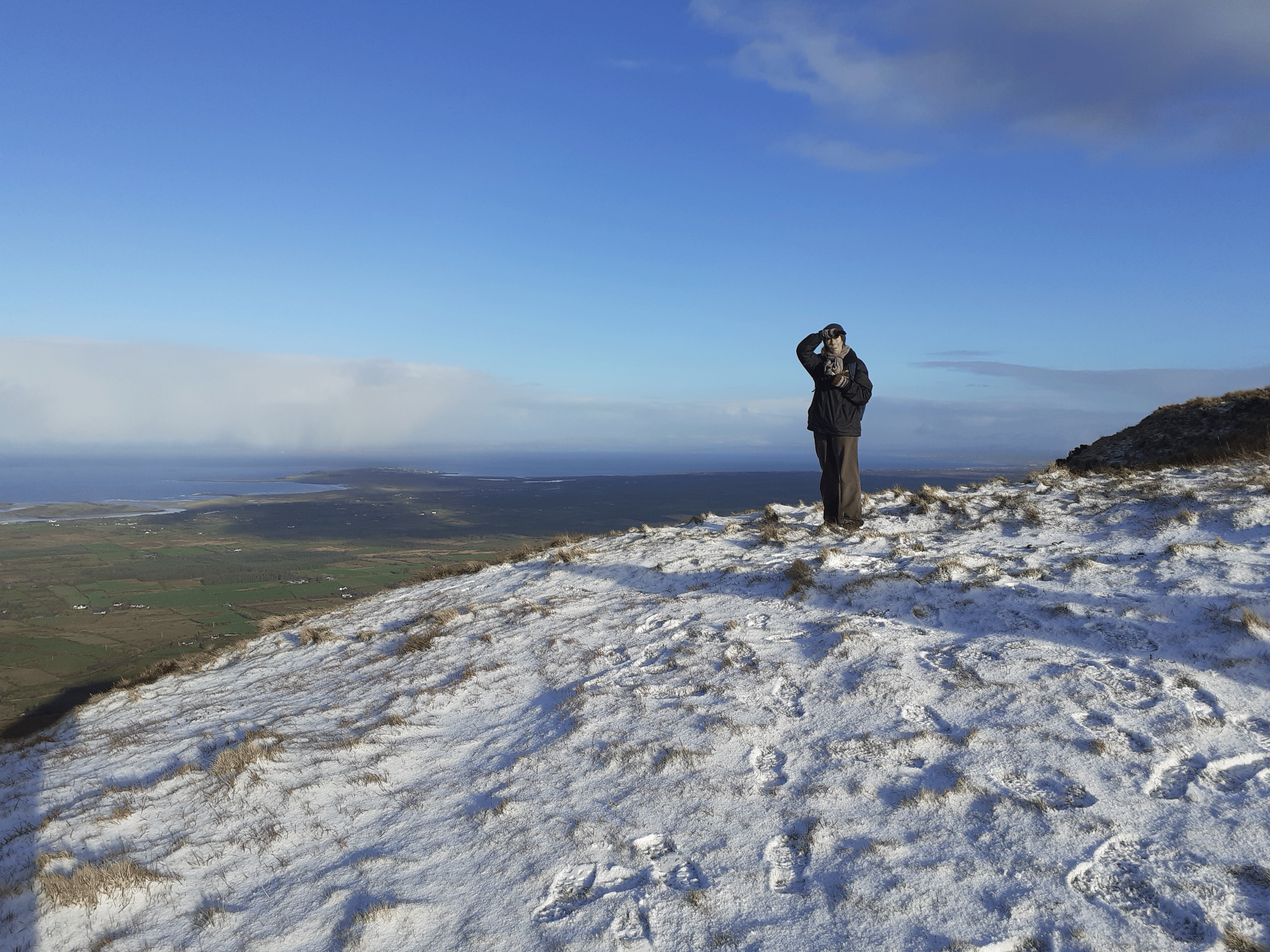As we reached the end point of Benbulben, by some divine intervention, the skies cleared, turning bright blue. Thankfully, the blizzard had blown through as David, our guide, had promised it would. The sun had come out. And yes, there were views! Views that looked out to the sea, the Sligo coastline, Mullaghmore and Streedagh bays, Slieve League (Ireland’s tallest sea cliffs in the distance). Like my fellow hikers, I was buzzing. To be so high up. To have such 360 degree views. I ate a mars bar and felt the warmth of the sun on my face. I was thawing out nicely.