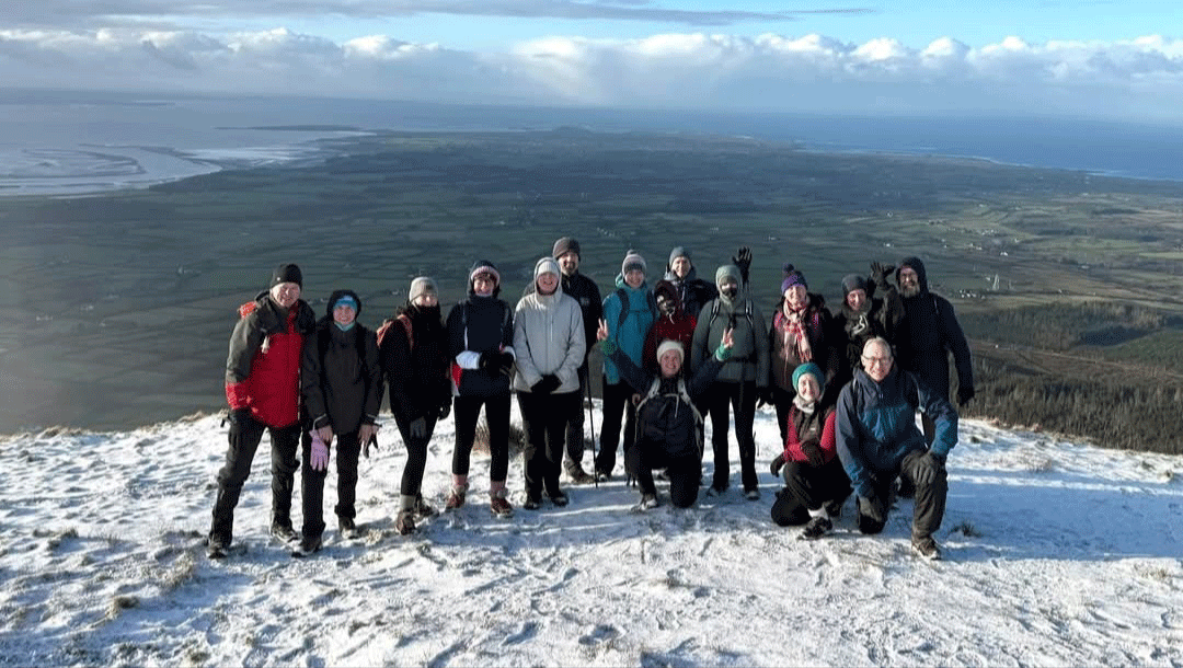 It’s hard to miss Benbulben as you drive around the area, in fact I can see the Dartry Mountains from our home. For over 5 years Benbulben has been taunting me to dare to get to the top of it. The opportunity to do so presented itself when a friend told me about High Hopes Hiking, an organisation providing guided hikes both in Ireland and the UK. A five-hour 12km guided hike to the top of Benbulben had been advertised for 3rd January 2026. A cracking way to kick off the New Year! And so there we were, me and Paul, at the meeting place, St Luke’s Bridge, 5km north of Drumcliffe and about a 45min drive from Black Pig Lodge, on a very cold and snowy January morning.