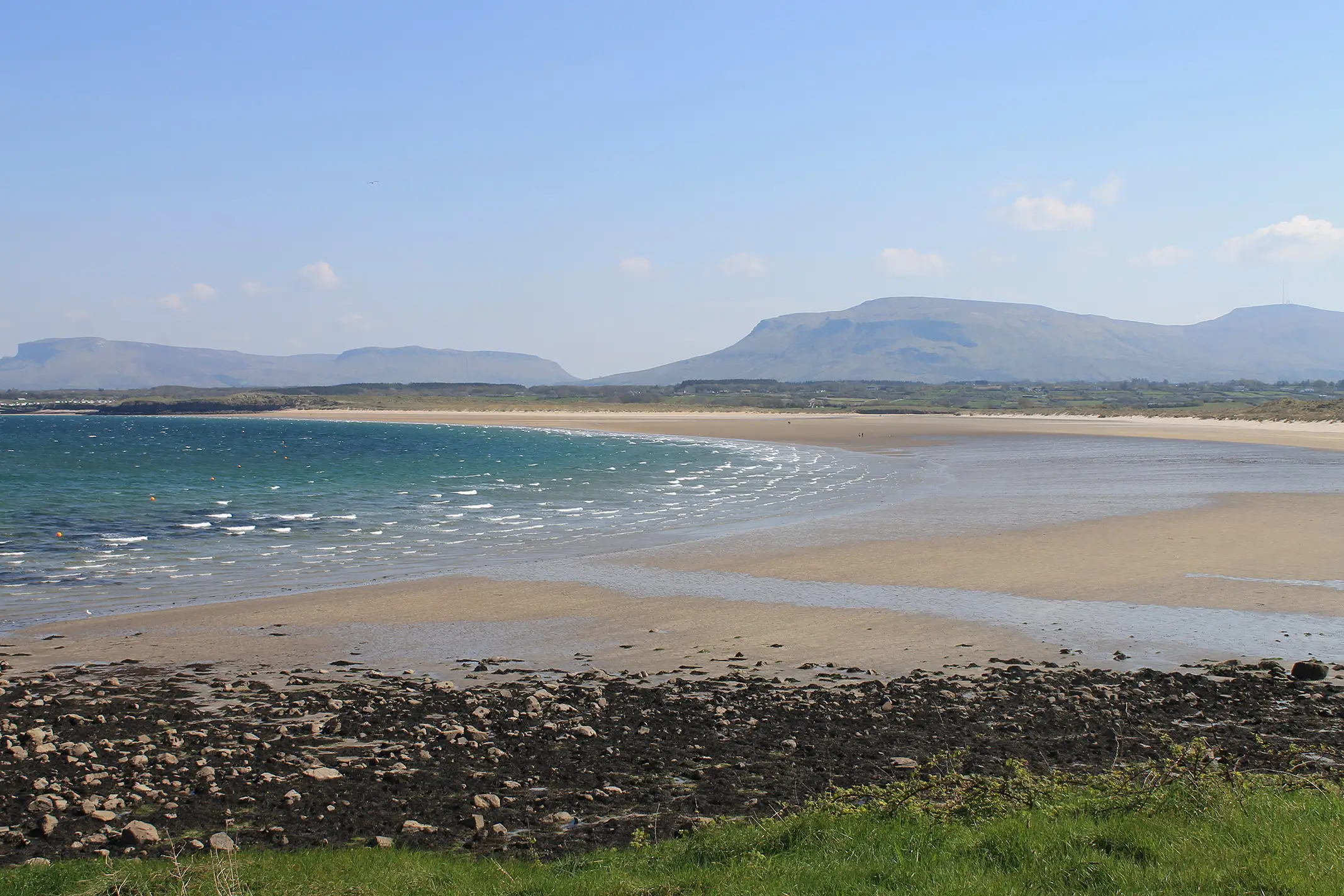 This is our go-to beach. A pleasant 30-minute drive from Black Pig Lodge takes you to Mullaghmore. There you will find plenty of free parking for cars and motorhomes alike overlooking the quiet little harbour. The harbour offers an easy sandy spot from which to launch kayaks and paddle boards (which can be hired during summer months). It is great fun hugging the coastline and exploring the kelp forests. There are number of good restaurants and cafes along the harbour front, which I recommend, but if it is swimming you are after then park a little way up from the harbour in the free carpark beyond the sailing club. There you will be met by views of the gorgeous horse-shore sandy bay backed by mountain views. An easy walk down to the beach, pick a spot and jump into the clear waters. It’s a go-to for families too, but I have never seen the beach overcrowded.