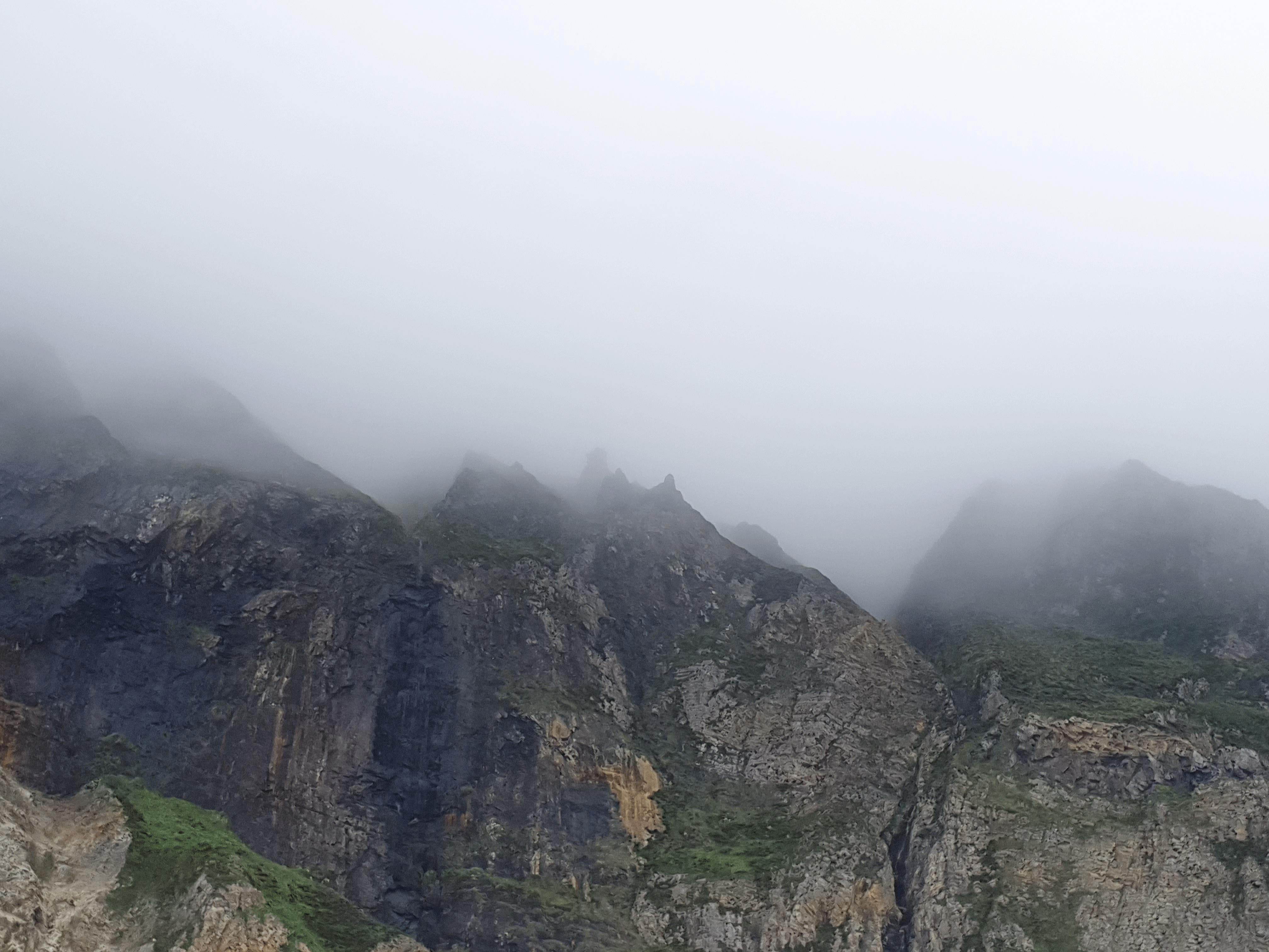 Despite the poor weather conditions, everyone on board (including a 4 month old baby), enjoyed the ride. Thrilling, informative and very dramatic, beautiful scenery. In a way, I'm glad I got to see the cliffs cloaked in their sea mist. It all added to the adventure.