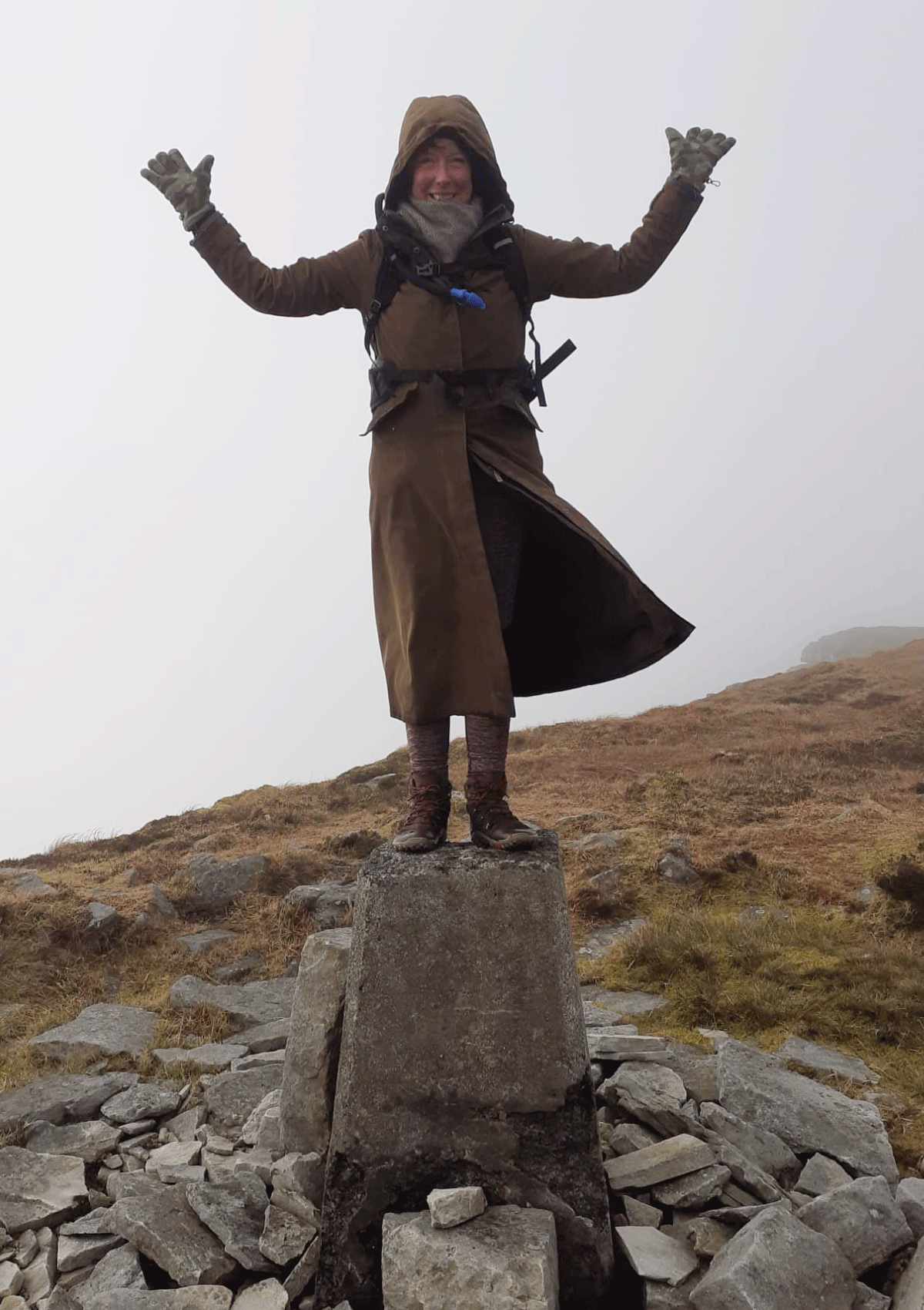 After a spot of lunch we continue to the trig point, a small concrete pillar on high ground installed by the Ordnance Survey in Ireland in the 1930s. But today it serves as an iconic marker for walkers and a photo opportunity.
